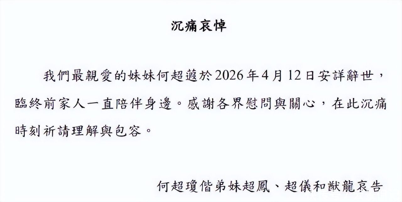 何超蕸的离世没有举办很大是丧仪,也没有大肆通稿,只是简简单单的家人陪在身旁,安安静静的离开。